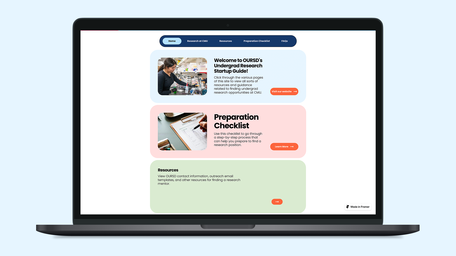 An online interactive module to help students prepare to apply for research at Carnegie Mellon University